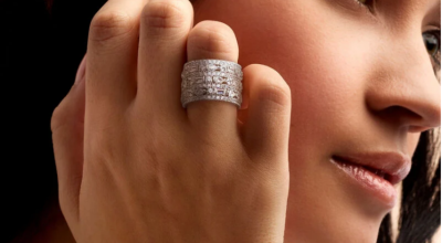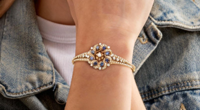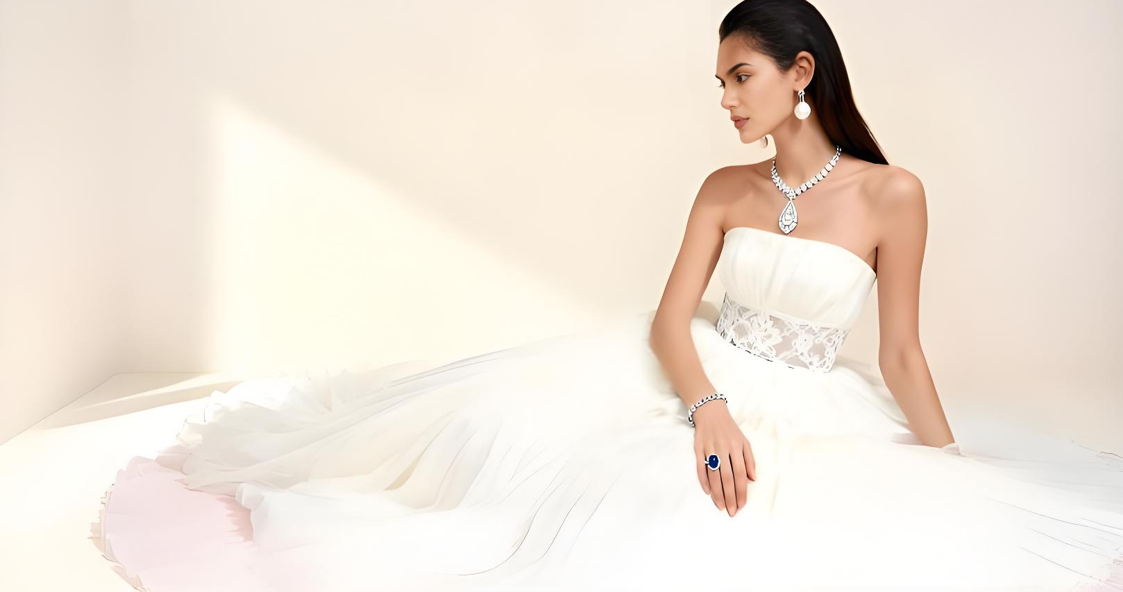 Purple floral drop earrings, a gold cross necklace, stacked gold bangles, and a gem ring add boho glamour to the airy white look—effortless style under sunlit streets.